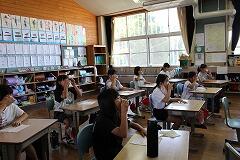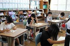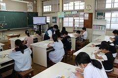 6年生は、植物の葉に日光が当たると養分(でんぷん)ができることを実験で調べていました。今日は、日光が当たっていない植物の葉にでんぷんがあるかどうかを実験の手順を確認しながら確かめていました。各班ごと植物の葉を慎重にお湯 につけ、ろ紙に挟んででんぷんをたたき出していました。ヨウ素液を垂らすと予想通り反応がなかったのを見て、やっぱりできないんだと納得していました。雨が続く中ですが、次の時間は日光が当たった葉を使って実験を行います。