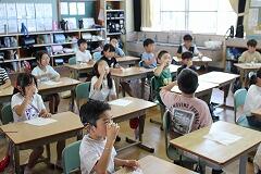 1年生が図書館で読書をしていました。一人でじっくり読む子、友達と絵本を見ながら一緒に読む子、図書館サポーターの先生に紹介してもらった本を読む子などそれぞれの子どもたちが、好きな本と触れ合っていました。最後には本の貸出を2冊していました。