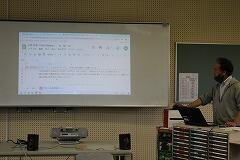 6年生 外国語学習での授業最後の様子を紹介します。外国語専科の先生とALTの先生が外国語教室において二人で進めています。本日の授業でポイントになる単語を説明し、3人の登場人物が『週末の過ごし方』を英語で話している動画を見ながら聞き取っていました。次の授業では、その文章を話したり、自分の週末の過ごし方を話したりする予告もしていました。画像にもありますようにタブレットでアンケート形式のフォームに自分の学習を振り返り入力すると、全面のモニターに結果が円グラフで映し出され、子どもたちがよかったところ次時にがんばりたいところを共通理解することができます。最後に、単語クイズゲームが出題されます。お題の『動物、季節等』の単語について、これまで学習した単語帳を手がかりに当てていくゲームです。6年生は、一部見えているアルファベットから動物の単語を一生懸命に考えています。正解するとガッツポーズが出ていました。友達やALTのヒントを頼りにしながら、全員答えることができました。