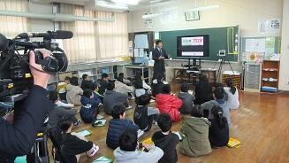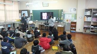 2月12日(水曜日)の5時間目に、キャリア教育の一環として、5年生と6年生が、新人アーティストをプロデュースするという学習をしました。東京のレコード会社とタブレット端末を使ってテレビ電話をつなぎ、担当者2名にプロデュースするために考えたアイデアを見ていただきました。子ども達は、自分たちが考えたアイデアをポスターにして発表していました。担当者から「いいアイデアですね。」と言われ、うれしそうにしていました。これからも、いろいろな職業を体験してほしいと思います。