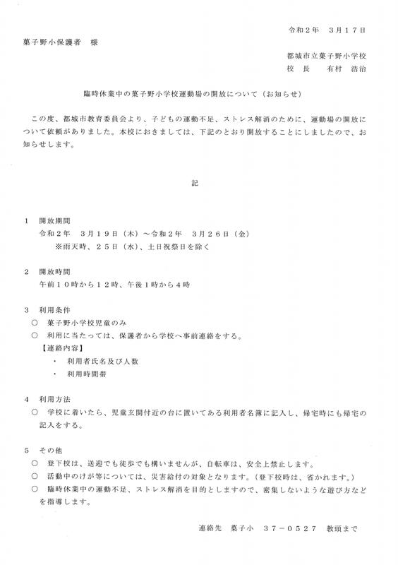 臨時休業中のグラウンド開放について(再掲)