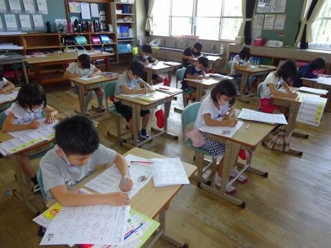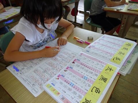 漢字プリントに取り組む様子です。みんな集中してがんばっています。