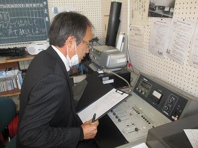 校舎に入ってからやることを養護教諭の先生から、説明を受けているところです。