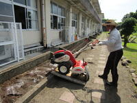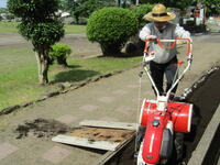 職員室前に、学年ごとの花壇があります。そこを、機械を使い耕してくださる方がいます。学校技術員の方ではありません。実は、校長先生です。全ての学年の花壇を、きれいに耕してくれました。