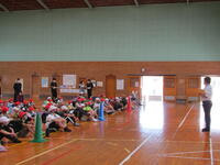 体育館から「ドレミファソラシド・・・」という音が聴こえてきます。音の正体は、20mシャトルランの音です。 各学年、新体力テストとして、体育の時間に長座体前屈、反復横跳び、立ち幅跳び、50m走、ソフトボール投げ、握力等を測定しています。
