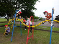 1・2年生は、三股町立図書館と、神柱児童センターに行きました。まず、図書館の近くの公園で遊びました。図書館では、絵本の読み聞かせや、自由に本を読む時間がありました。神柱児童センターでは、オセロや将棋をしたり、工作をしたりしました。工作では、木材を使って、こいのぼりの色塗りをしました。