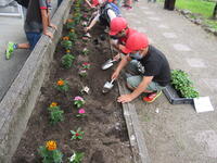 花の根を傷めないように、そっと優しく手に取って植えました。花を植えた後は、赤や黄色、白やピンク等、花壇が色とりどりでとてもきれいです。