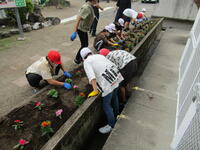 先日、校舎前の花壇に、花の苗植えを行いました。植えた花は、マリーゴールド、日々草、トレニアの3種類です。都城農業高校生が育てたものを、購入しました。