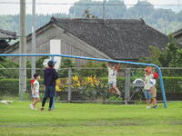 最初、子ども達は田んぼに足を入れるのをためらい気味でした。しかし、遊びが始まると、泥の心配などどこへやらです。ボールに向かってダイブしたり、田んぼの中をしぶきをあげて走ったりしていました。服の汚れ?そんなの気にしません。