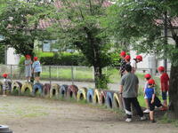 遊びの内容は様々です。ドッジボールをしたり、うんていで端から端までチャレンジしたり、タイヤじゃんけんをしたりと、どの遊びも楽しそうです。