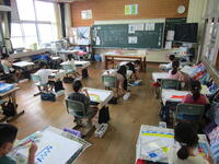 いちょう学級の図工「七夕作品」では、七夕の飾りを丁寧につくりました。わかくさ学級の国語「聞いて、考えを深めよう」では、インタビューの練習をしました。1年生の国語「おおきなかぶ」では、全員で力を合わせて大きなかぶを抜きました。2年生の国語「あったらいいなこんなもの」では、あってほしいものを作文や絵で上手に発表しました。3年生の図工「アートカードを使って」では、テーマに沿ったカードを選び、感想を交流しました。4年生の算数「垂直・平行と四角形」では、ひし形を対角線で切った時の形を考えました。5年生の算数「合同な図形」では、合同な三角形をかくときの頂点の決め方を話し合いました。6年生の国語「お話づくり」では、文の中の主語と述語について確認をしました。