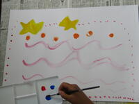 2年生の図工「えのぐじま」では、絵の具を使って、まっすぐな線やぐにゃぐにゃ線を描きました。線を描くうちに、どんどん形が出来上がっていきます。