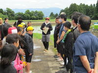 今日は、学校近くの田んぼで、5・6年生がどろんこドッジボールやどろんこリレーを行いました。JA庄内やそよかぜグループの方々の協力のもと、実施することができました。
