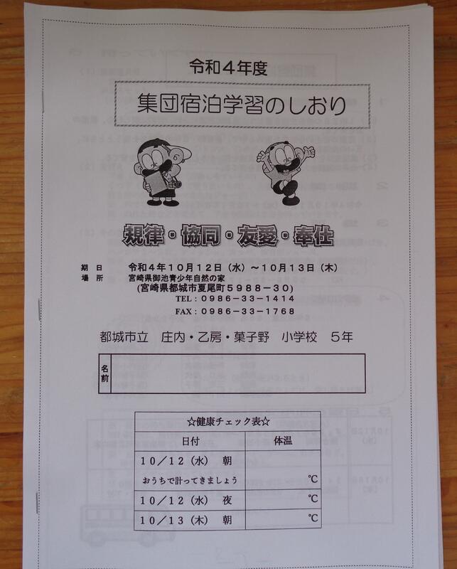 12日(水)から、5年生が宿泊学習に行っています。菓子野小学校、乙房小学校、庄内小学校の3校合同です。場所は御池青少年自然の家です。