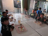 昨日、様子を見に行くと、ちょうど夕飯の時間でした。たくさんの料理が並び、子ども達はおいしそうに食べていました。