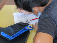 授業後半には、本物の和紙が準備されていて、和紙に触る機会がありました。実際に触ることで、教科書にのっている文の通り、和紙はやぶれにくい紙だということに驚いていました。