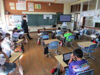 来週、5年生は「御池青少年自然の家」で1泊2日の宿泊学習があります。今年も、庄内地区3校(菓子野小・庄内小・乙房小)合同で実施します。今日は3校をオンラインでつなぎ、顔合わせ会を行いました。自分の名前や好きな食べ物、宿泊学習で担当する係など、一人一人カメラの前で自己紹介をしました。他校の仲間の顔を見ることができて、ドキドキ感が収まり、わくわく感が高まったのではないでしょうか。