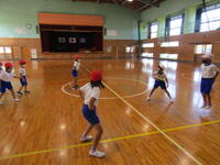 体育館から楽しそうな声が聞こえてきます。2年生が体育の授業中でした。