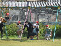 昼休みになると、多くの子ども達が遊びに誘っていました。広い運動場を、右に左に大忙しです。教育実習生がブランコをそっと後ろから押したり、みんなに平等に声をかけたりと、優しい姿がすてきです。