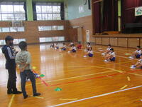 11月25日(金)に、4年生の体験学習で、皿まわし体験がありました。日本皿まわし協会(宮崎支部)の方々に来ていただき、皿まわしのやり方を教えてもらいました。