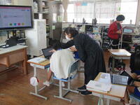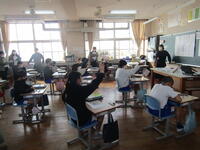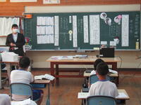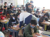 教育実習生も授業中、終始笑顔でした。子ども達の発表のよいところをほめたり、個別に声掛けしたりすることで、全員が安心して授業に臨むことができました。
