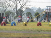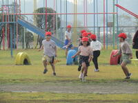 広い運動場を、端から端まで子ども達が逃げます。素早い動きはもちろん、しっぽが取られそうになると、ひょいとうまくかわすのも上手でした。みんなで遊ぶって、やっぱり楽しいですよね。