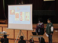 まず、お米の品種のについての発表でした。コシヒカリやヒノヒカリ、あきたこまちなどの品種についての説明でした。次に、田植えや稲刈り、脱穀など、自分たちが体験して感じたことを、プレゼンを使って発表しました。実際に体験したからこそ分かる、具体的な発表内容でした。