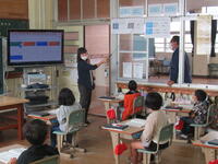 まず、フォームというソフトを使って、アンケートをとりました。結果がすぐに電子黒板に映しだされ、子ども達は一気に興味をもちました。他にも、お面をかぶって演技をしたり、友達と意見交換したりと、子ども達は楽しんで授業に取り組みました。