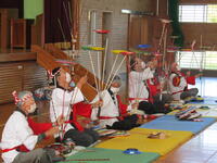 子ども達も皿まわしを体験しました。初めの頃は、なかなかうまく回せませんでしたが、コツを教えてもらい練習するうちに、少しずつ回せるようになりました。