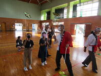 まず、学年ごとに違う色のしっぽ(スズランテープ)をつけました。次に、児童会の人達から、遊びのルール説明がありました。1~3年生は走ってOK、4~6年生はスキップで逃げるというルールでした。ルールを確認したら、いよいよ遊びのスタートです。
