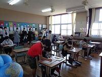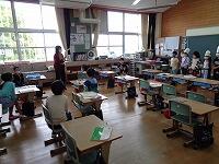 11日に入学した1年生も担任の先生の話をよく聞いて、好きなものなどの発表をしました。そのあとの「だれでしょう?」クイズは大盛り上がりでした。1年生だけでなく他の学年もいろいろな工夫のある授業を楽しんでいました。