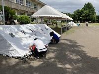 明日の運動会に向け、午前は4~6年児童と職員で運動場整備や机・いす運び、午後からは保護者のみなさんと職員でテント立てや入場門の設置、遊具固定を行いました。強風で全てを終わらせることはできませんでしたが、明日の運動会を無事迎えることができそうです。