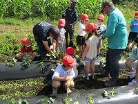 6月7日(水)に1・2年生が芋の苗を植えました。今年も田村さん(元PTA会長)がお世話をしてくださいました。子どもたちは、植える深さに注意しながら植えていました。