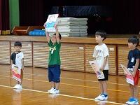 運営・集会委員会主催の1年生の歓迎集会を行いました。1年生の自己紹介、はっきり元気な自己紹介ができました。「いいとも!」は、1年生の掛け声に2~6年生のお兄さん・お姉さんが大きな声で答えてくれました。6年生の歓迎の言葉に続いて、じゃんけん列車を全校で楽しみました。みんな楽しかったのでしょうね。感想を発表する子がたくさんいました。笑顔いっぱいの歓迎会でした。