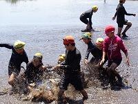 JA庄内・JA青年部と学校で6月22日(木)の田植え前のイベントとして「どろんこドッジボール」と「どろんこリレー」を行いました。