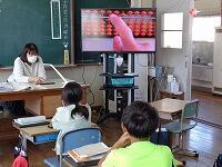 4年生は、そろばんの学習でした。そろばんを使って小数の計算をしていました。大型モニターにそろばんを映し、一つ一つ確かめながら学習が進んでいました。