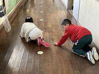 朝の清掃の様子です。なわとび旬間のときは、朝の清掃を行います。1年生が、長い廊下を無言でふいていました。菓子野小の無言清掃の伝統はしっかり引き継がれています。