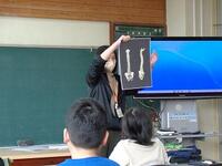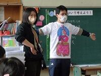 初任の原田養護教諭が、今年度の初期研のまとめとして研究授業を行いました。3年生の学級活動「よい姿勢と健康な体」を担任の先生とTTで行った授業でした。原田先生は、姿勢と体について専門的な視点から説明をしたり考えを促したりしていました。よい姿勢の練習の場面では、学習用端末を使い立腰の様子を写真で映して見せ合うなどの効果的な活用も見られました。授業の最後の子どもたちの立腰の姿勢は、とても美しい姿勢でした。