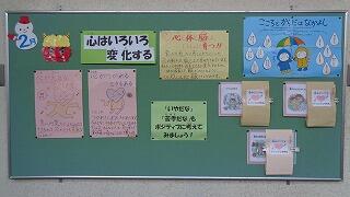 「心と体と脳は、いっしょに育つ!!」笑ったり、怒ったり、悲しんだりといった心の動きは、脳によって生み出されます。脳も心や体も成長とともに変化するもの。体が成長して身長がのびるように、心も大人に向かって成長していくのです。【保健室前掲示より】
