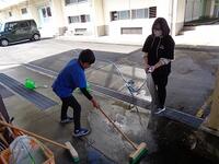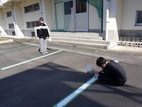 6年生の学校への感謝を表す活動の第2弾です。薄くなっていたり消えかかったりしていた土足禁止のライン(黄色)や駐車スペースのライン(白)を塗りなおしてくれました。卒業記念にもなりました。6年生ありがとう。