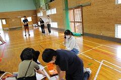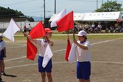 5・6年生の種目は、『120m走』、『5・6年合同全員リレー』、『令和竹取物語』です。5・6年生が走っている姿を低学年が見ると憧れる走りに思える声が聞かれます。また、バトンパスも体育の学習で練習がより深まり、流れるような受け渡しが画像からもうかがえます。タイトルにも『令和』とありますように、団技の竹取の競技が始まる前には児童による表現もあり集団の美しさを感じます。6年生は、親子団技『心をひとつに走り抜け』がありどのような競技なのか楽しみです。最後に、5・6年生は運動会の運営を行う係を担当してもらっています。担当の先生と一緒にそれぞれの係を自主的に運営していました。天気のことが気がかりですが、6年生にとっては小学校最後の運動会ですので、盛会に行われるように菓子野小全員でがんばりたいです。