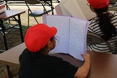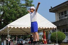 今日は、運動会の予行練習の日です。昨日の台風のような風の影響でテントを折りたたんでいましたので、今朝は立てる作業から行って15分遅れの開会式となりました。ご覧のように両団の団長は青空の下で声高らかに誓いの言葉を発していました。 練習通りにプログラムは進みました。しかし、天候がよすぎて次第に子どもたちの体力も奪われていく様子がうかがえました。それはプログラム終盤の3回目の給水タイムを終えた後に、次の全校ダンスに椅子から立ち上がって準備しようとする子どもたちが少なかった場面でした。当日に向けて子どもたちに給水タイムと休憩をしっかり計画的にとる必要を感じました。さて今回は、開会式、エール交換の様子をお伝えしようと思います。来週は、低・中・高学年部ごとにかしのっ子の運動会の様子を紹介していこうと思います。