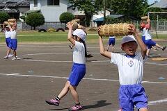 3・4年生の種目は、『100m走』、『俵踊り』、『3・4年生合同全員リレー』です。3・4年生になると自分の走りに自信が出てきて、友達の走り方を見ながら自分の走りに生かしていこうとする姿が体育の時間に見られました。また、表現活動として『今屋俵踊り』を発表します。保存会のみなさんのご協力により、予行練習の時も生の演奏で子どもたちの踊りを応援してくださいました。本当に地域に育てられていることを実感します。どうぞ本番の発表も楽しみにしていてください。