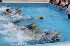 昨年度、プールの改修が行われ、ピカピカのプールに生まれ変わりました。令和6年度のプール開きが、5・6年生合同で1番目に行われました。体育振興指導教員による小学校派遣事業として、高校体育の専門の先生に先週研修をしていただきまして、本日5・6年生が、1回目の授業を受けました。やはり一番大切にしていることは、児童の安全を守ることですので、活動の節目ごとにバディシステムによる人数確認とお互いの健康チェックを行っていました。水温は、適温で気持ちがいいと子どもたちは言っていました。活動の中盤では、水中じゃんけんをして、水中でのジェスチャーゲームを行いました。子どもたちは、『ゴリラ、野球、バスケットボール』など大きな動きでわかりやすいジェスチャーをして、お互いに正解したことを喜び合っていました。また、水底に落とした宝物(短いホース)を全員が1個ずつ1分以内に拾うゲームでは、拾っていない友達への声かけが大切になってきます。見事58秒でクリアすることができ、大喜びのかしのっ子たちでした。