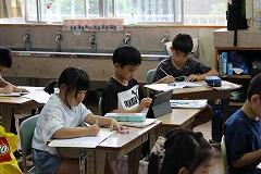 先日、低い土地のくらしの学習をしていた5年生ですが、今日は「寒い土地とそこで暮らす人々の生活」について、学習していました。前回の学習を活かしながら、気候の様子などに着目して、寒い土地で暮らす人々の生活を捉え、なかにはあたたかい土地の気候の様子についても考え、調べていました。前回の学習方法がよくわかっているので、一人一人の学習の姿が積極的でした。また、後半の画像にもありますように友達の調べている内容を見せてもらったり、話し合ったりしながら自分の考えをより確かなものにしているようでした。この学習を通して、人々は自然環境に適応して生活していることが理解でき、今の自分の生活を振り返る一助になると思います。