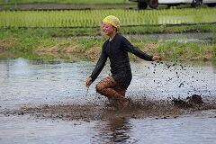 今日、田植え前にどろんこドッヂボールをしました。田んぼに行くとドッヂボールの棒が立ててありました。心がうきうきしました。どろに入る時、ヌルヌルするので入るのがいやだなあと思いました。足が入ると、思ったよりも深くていやな気持ちがなくなってきました。どろの中で走ることもしました。走るのは、簡単にできると思っていたけど、やってみると足を出すのがとても難しかったです。来週、田植えがあります。どろに入るのが楽しみです。
