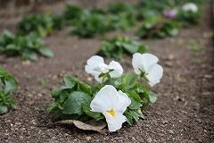 花壇のパンジーだけでなく、白い鉢に植えられたたくさんの苗たちも、春の出番を待って整然と並んでいます。これらは卒業式や入学式で、学び舎を彩る大切な立役者たち。子どもたちの成長と同じように、一歩ずつ、着実に根を張っています。