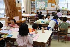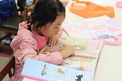 1年生が図書館で読書をしていました。一人でじっくり読む子、友達と絵本を見ながら一緒に読む子、図書館サポーターの先生に紹介してもらった本を読む子などそれぞれの子どもたちが、好きな本と触れ合っていました。最後には本の貸出を2冊していました。