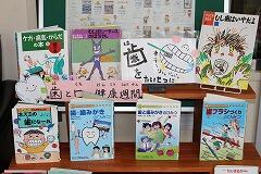 また、図書館の入り口には、どんなジャンルの本があるのか紹介する表示があります。また、『推し本』の紹介カードに掲載されている本の展示コーナー、いろいろな家族の紹介コーナー、図書館サポーターの先生が読み聞かせで読んでくださった本の紹介コーナー、最後に今月の特集『歯の衛生週間』コーナーなどがあり、ついつい足を止めて本に手が伸びていきます。かしのっ子のみなさん、たくさんの本と出会いましょう。