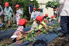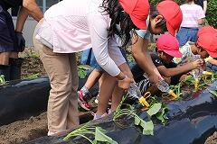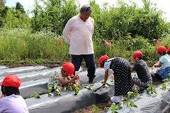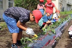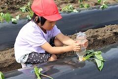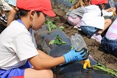 今週は、芋の苗植え週間になっています。早速1・2年生が芋の苗の準備等をしてくださった地域の方に教えていただきながら1本1本を丁寧に植えていました。植えた後は、根元にたっぷりの水をあげています。指導していただいた方から「明日も水をあげてね。」と言われると「は~い。」と子どもたちは応えていました。10月には芋の収穫がありますので、それまでお世話をしっかりとして大きく育ってほしいですね。